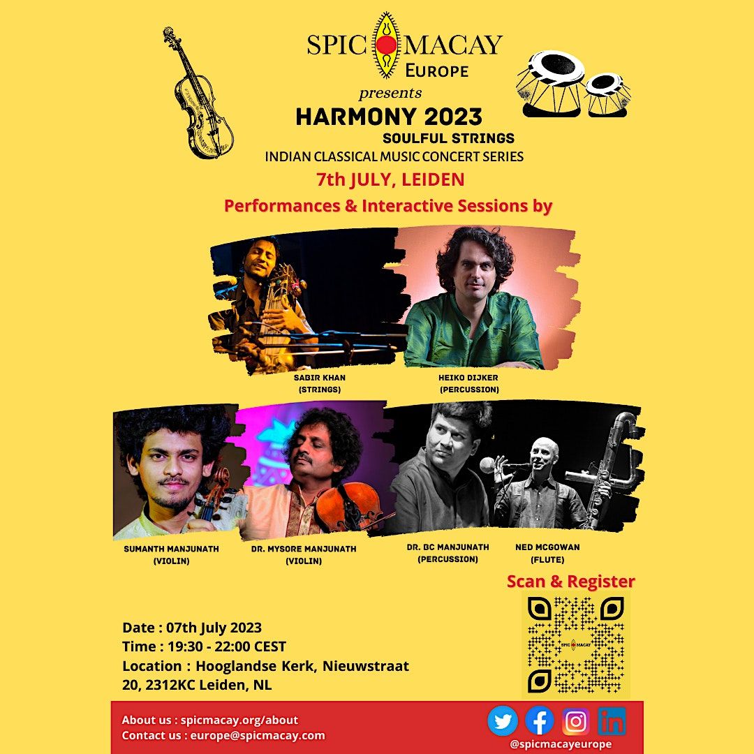 Soulful Strings is brought to you by the Europe chapter of SPIC MACAY (Society for the Promotion of Indian Classical Music, Arts and Culture Among the Youth) as part of the “Harmony Series” to celebrate and exchange ideas from the priceless cultural heritage of India and Europe.