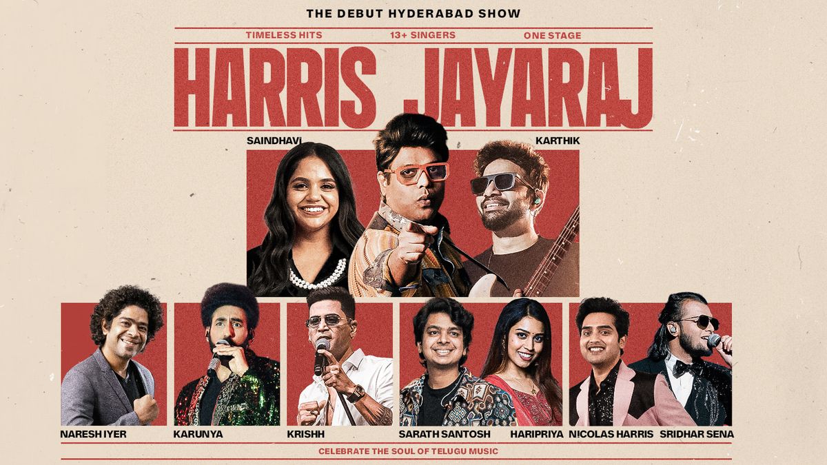A musical night Hyderabad will remember forever with maestro Harris Jayaraj! For the first time, the legendary Harris Jayaraj brings his debut Telugu musical show to the city — a celebration of the timeless soul of Telugu music joined by an extraordinary team of 18 powerhouse singers for a night of magic, nostalgia, and pure emotion.