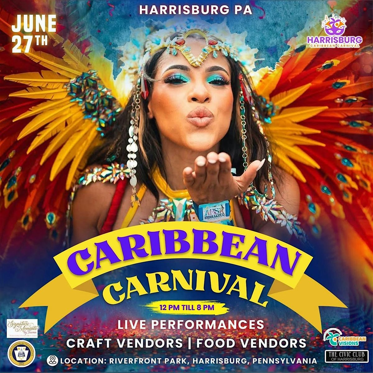Welcome to the **Harrisburg, PA Caribbean Carnival** happening at **Riverfront Park** on **June 27, 2026 at 12:00 PM** (Eastern Time)! Get ready for a day filled with vibrant music, delicious food, and colorful costumes. Join us for a celebration of Caribbean culture right here in Pennsylvania. Don't miss out on the exciting performances and activities lined up for you. Mark your calendars and come ready to have a blast!
