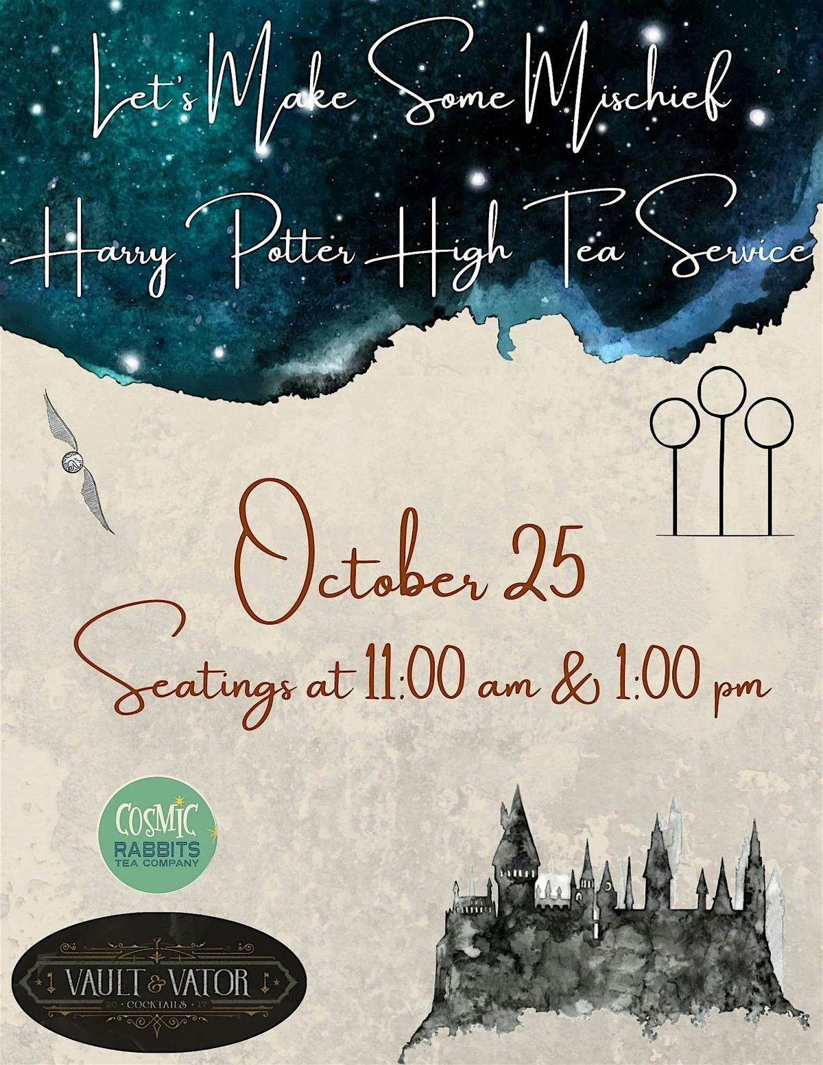 Please feel free to sport your finest wizarding wardrobe or your favorite tea attire. Whatever you wear, come prepared for all sorts of mischief!
