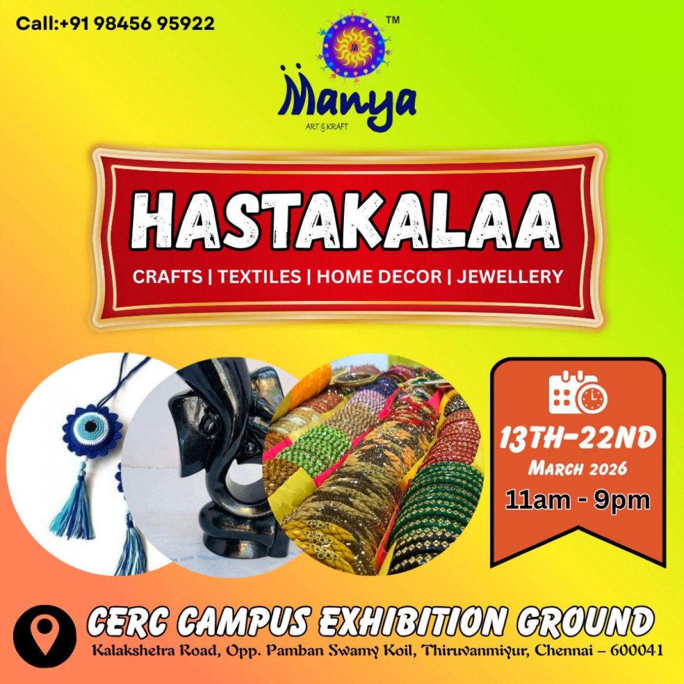 Experience a unique shopping destination where creativity, culture, and craftsmanship come together. Hastakalaa, presented by Manya Events, brings talented artisans from across India showcasing beautiful handcrafted products, textiles, home décor, jewellery, fashion accessories, and much more.