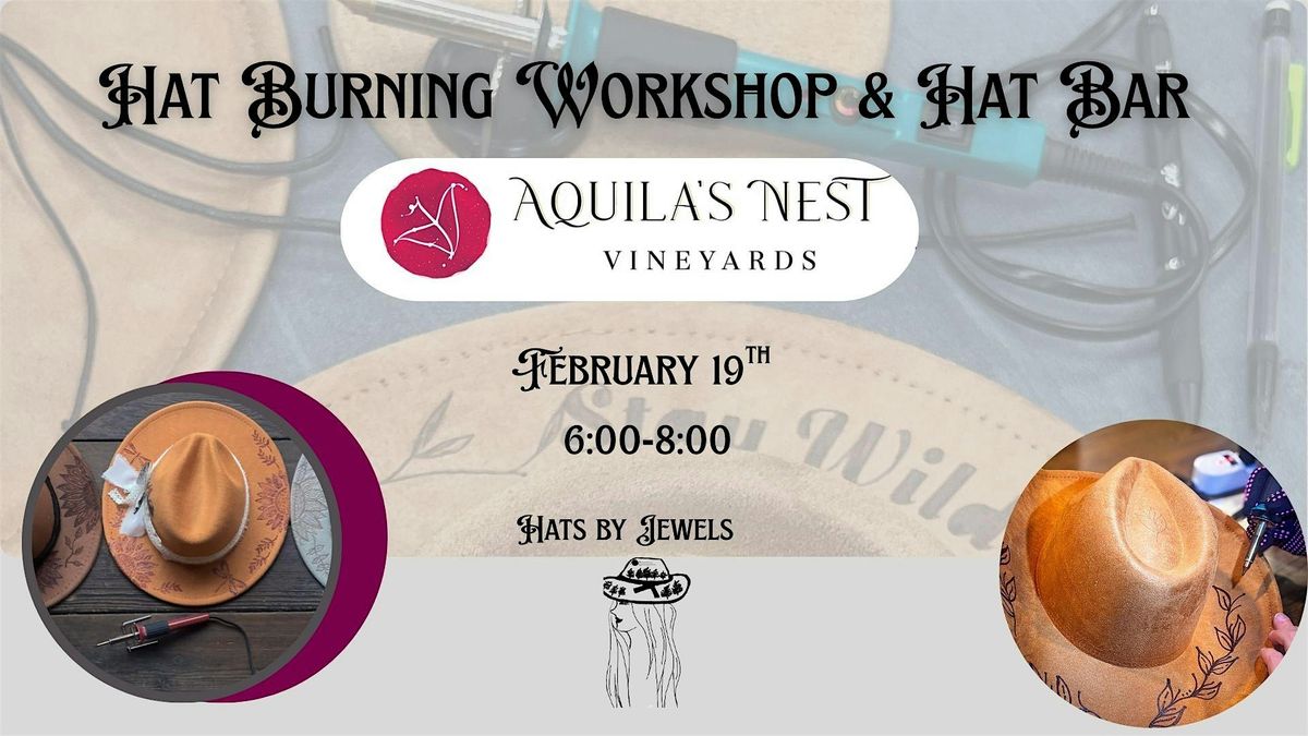 Come join us at Aquila's Nest for a fun-filled evening of creating your own unique hats and learn the art of burning designs into them. This in-person event is perfect for those looking to unleash their creativity for an evening of crafting with fellow hat enthusiasts. Don't miss out on this exciting opportunity to personalize your hat and learn a new skill!