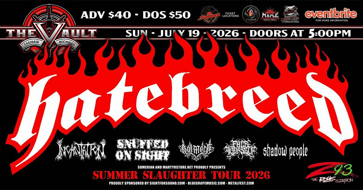 HATEBREED "Summer Slaughter Tour 2026" wsg/ Incantation, Snuffed On Sight, Balmora, Face Yourself, and Shadow People!!