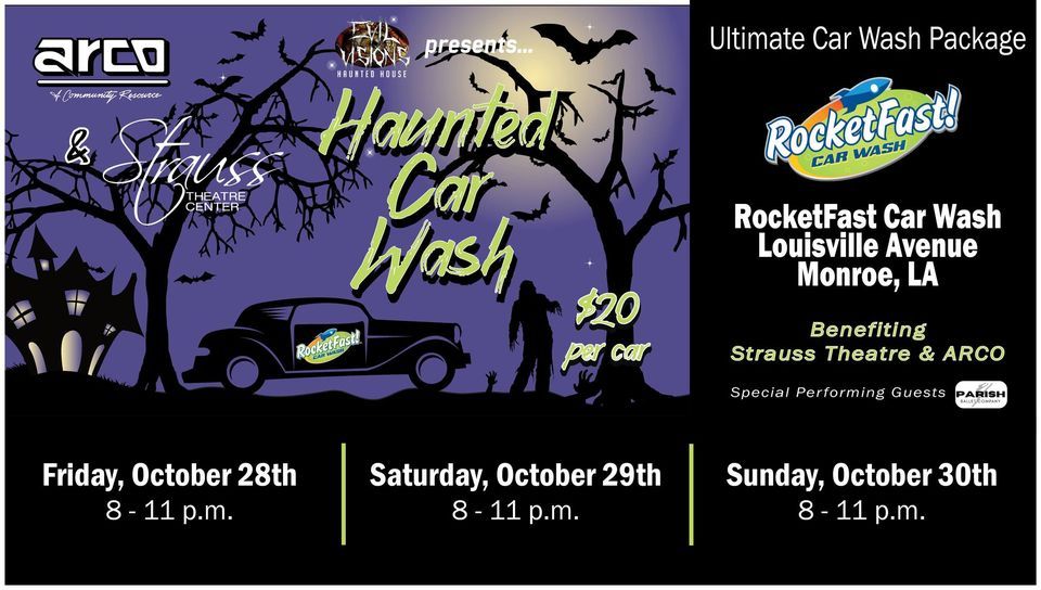 Are you ready to have some Spooky Car Wash Fun?It's Spooktacular to bring the very scary HAUNTED CAR WASH back for a 3rd year to benefit ARCO and Strauss Little Theatre of Monroe presented by Evil Visions Haunted House. Special Performing Guests- Parish Ballet Company. ?