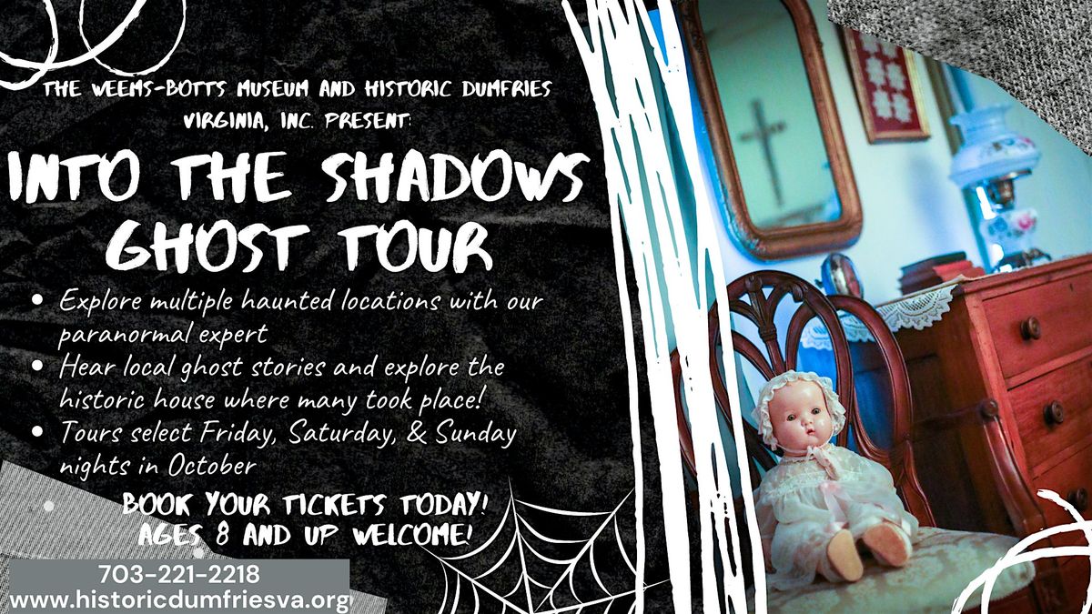 Join us for one of our seasonal haunted walking tours, only during the month of October! Our paranormal expert will take you through multiple locations in Dumfries' historic district while sharing local ghost stories - the tour will end at the Weems-Botts historic house, the site of many of these tales! The tour will take you inside of the historic house - if you dare to enter! All proceeds from tickets will go towards Historic Dumfries VA, a nonprofit dedicated to the preservation of the historic Weems-Botts Museum.