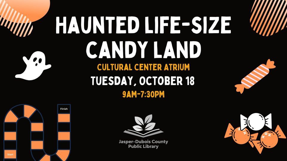 Families are invited to stop by for some fun playing our Lifesize Candyland with a Halloween twist. This game will only be up for one day for open play between the hours of 9 am and 7:30 pm. Stop by the front desk for your packet of cards to play the game.