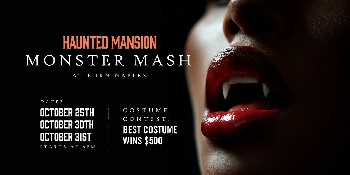 Step into the Haunted Mansion at BURN Naples for a Halloween celebration like no other. Each night brings its own energy β from spooky sophistication to high-end thrills. Enjoy premium cigars, handcrafted cocktails, and a costume contest that could earn you $500. Gather your crew, dress to impress, and experience Halloween the BURN way.