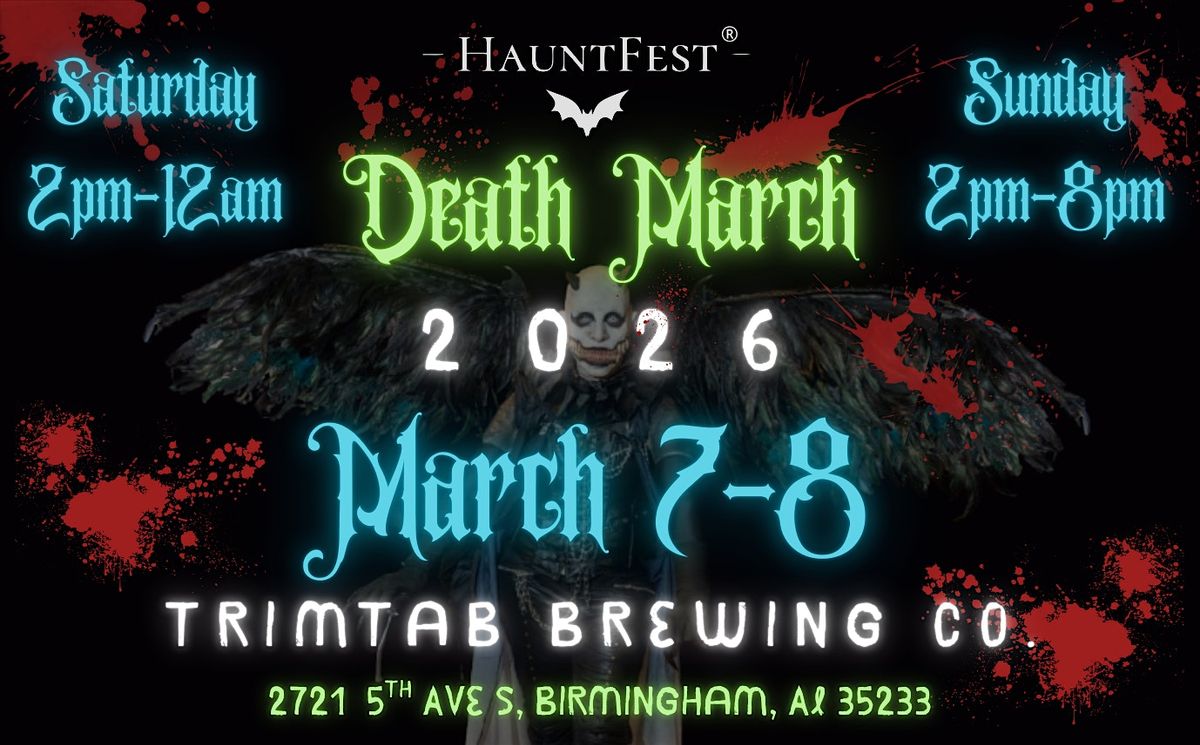 Welcome to HauntFest, where we summon the spirit of horror and Halloween all year round! Immerse yourself in the macabre delights of live music, art vendors, spine-chilling entertainment, and bewitching activities. This fiendish affair beckons dark spirits, midnight wanderers, witchy souls, and the eternally restless. It’s a dead man’s party! Join us in person for the ultimate spooky festival at HauntFest Death March 2026. This isn’t your average fest – it’s a thrilling, spine-tingling event filled with eerie surprises, creepy costumes, and a whole lot of fun. Whether you're a horror fan or just looking for a wild experience, this event is for you. Don’t miss out on the chills and laughs – come make some unforgettable memories!