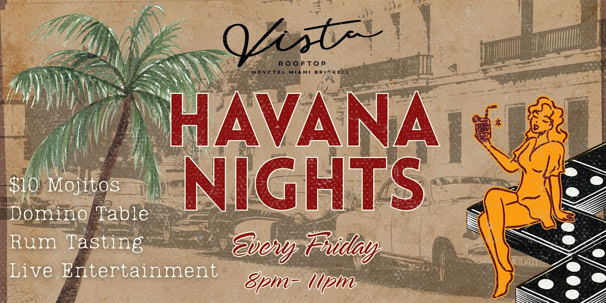 Transport yourself to the golden age of Havana at one of Miami’s most stunning rooftop lounges. Join us for an evening of rich culture, refreshing cocktails, and classic Cuban charm overlooking the city skyline. Enjoy $10 mojitos, live Cuban music,rum tasting, live music and entertainment, and classic domino games—all set against sweeping views of the Miami skyline.