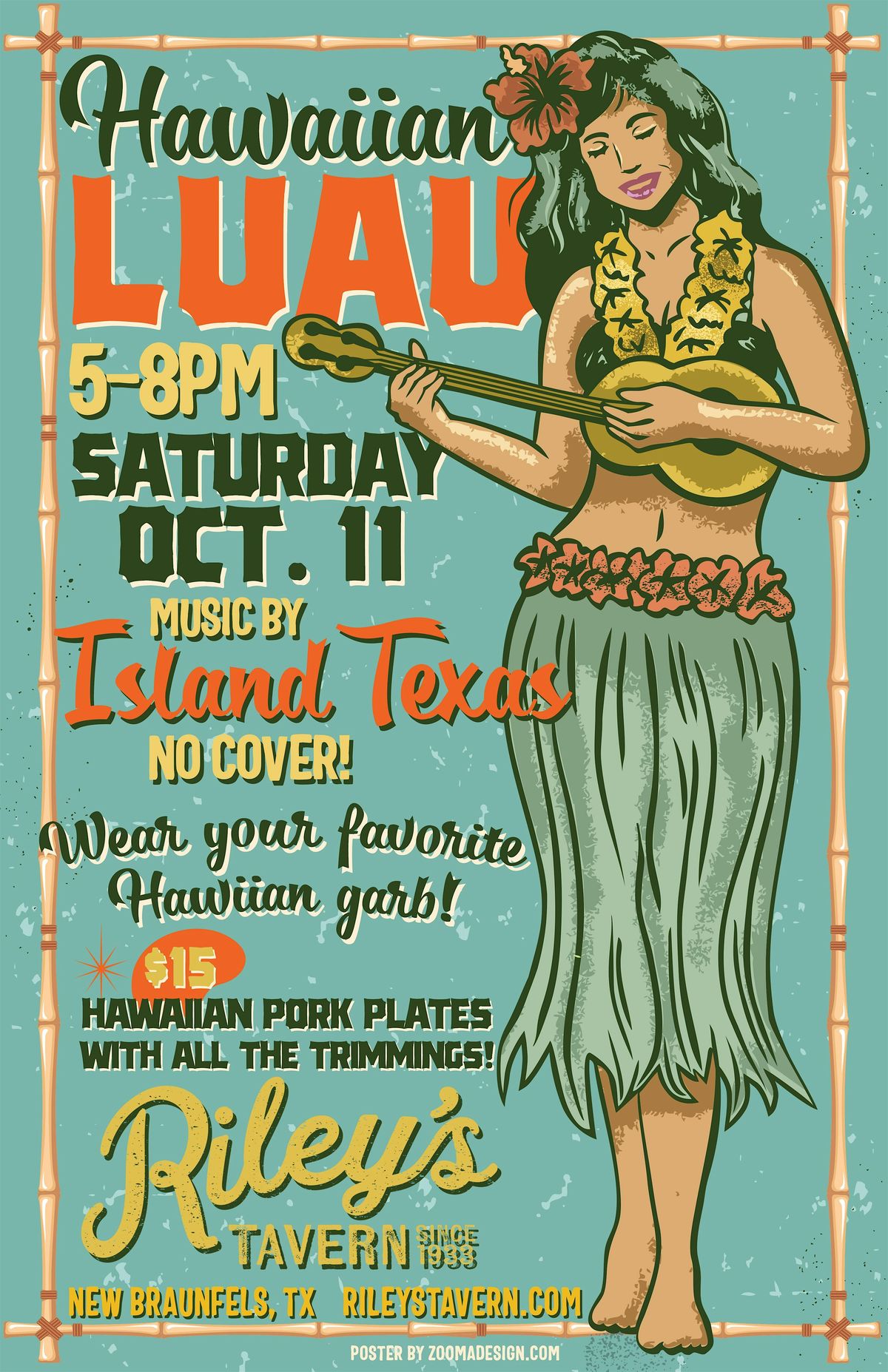 Come join us for a fun-filled evening at Riley's Tavern featuring the Island Texas Band! Get ready to experience the ultimate Hawaiian Luau right here in New Braunfels, TX, USA. Enjoy live music, delicious tropical drinks, and a festive atmosphere that will transport you straight to the islands. Don't miss out on this unforgettable event! Event is free, price is for food plates.