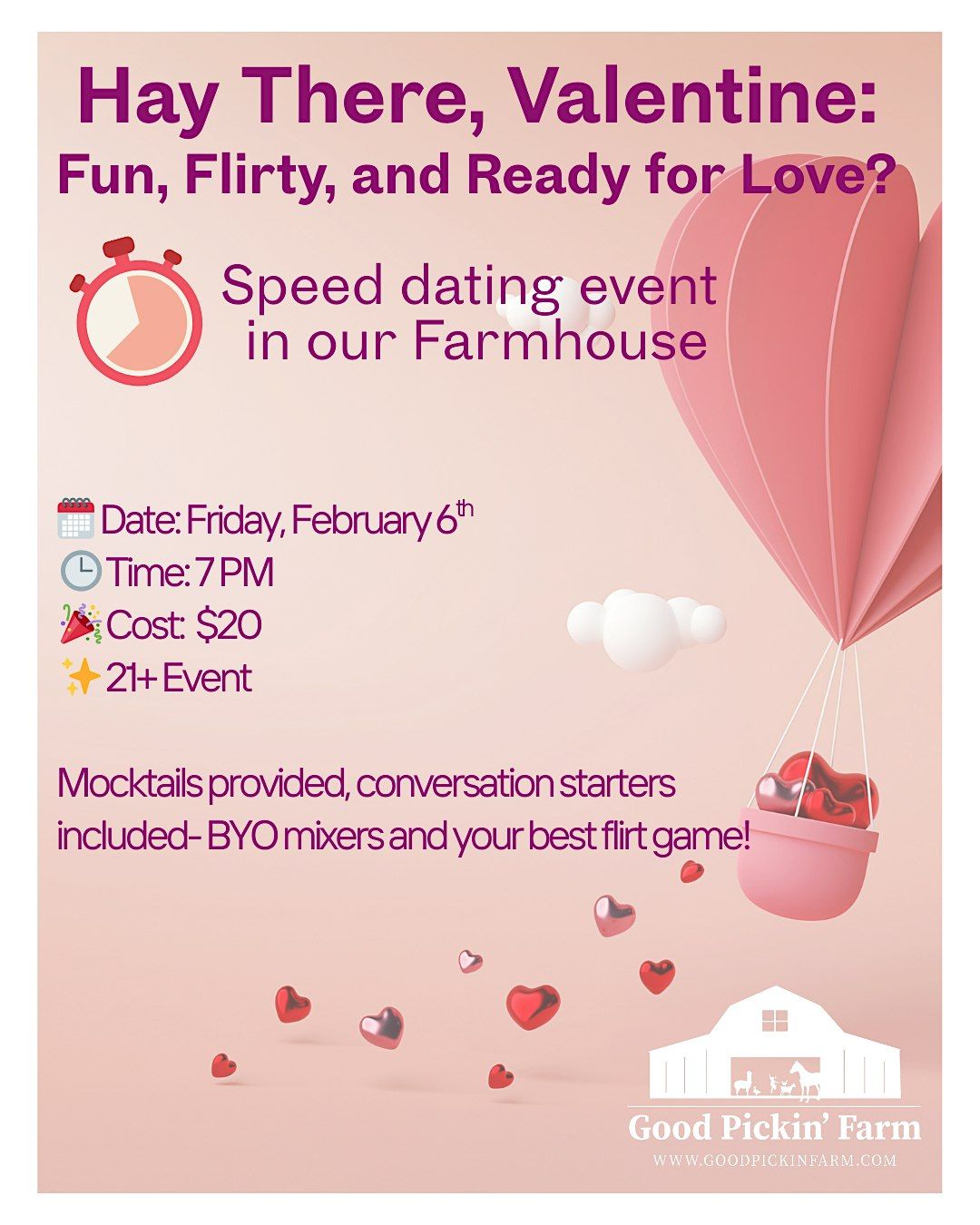 Looking to meet new people, make connections, and enjoy a fun night out in the farmhouse? This one’s for you.