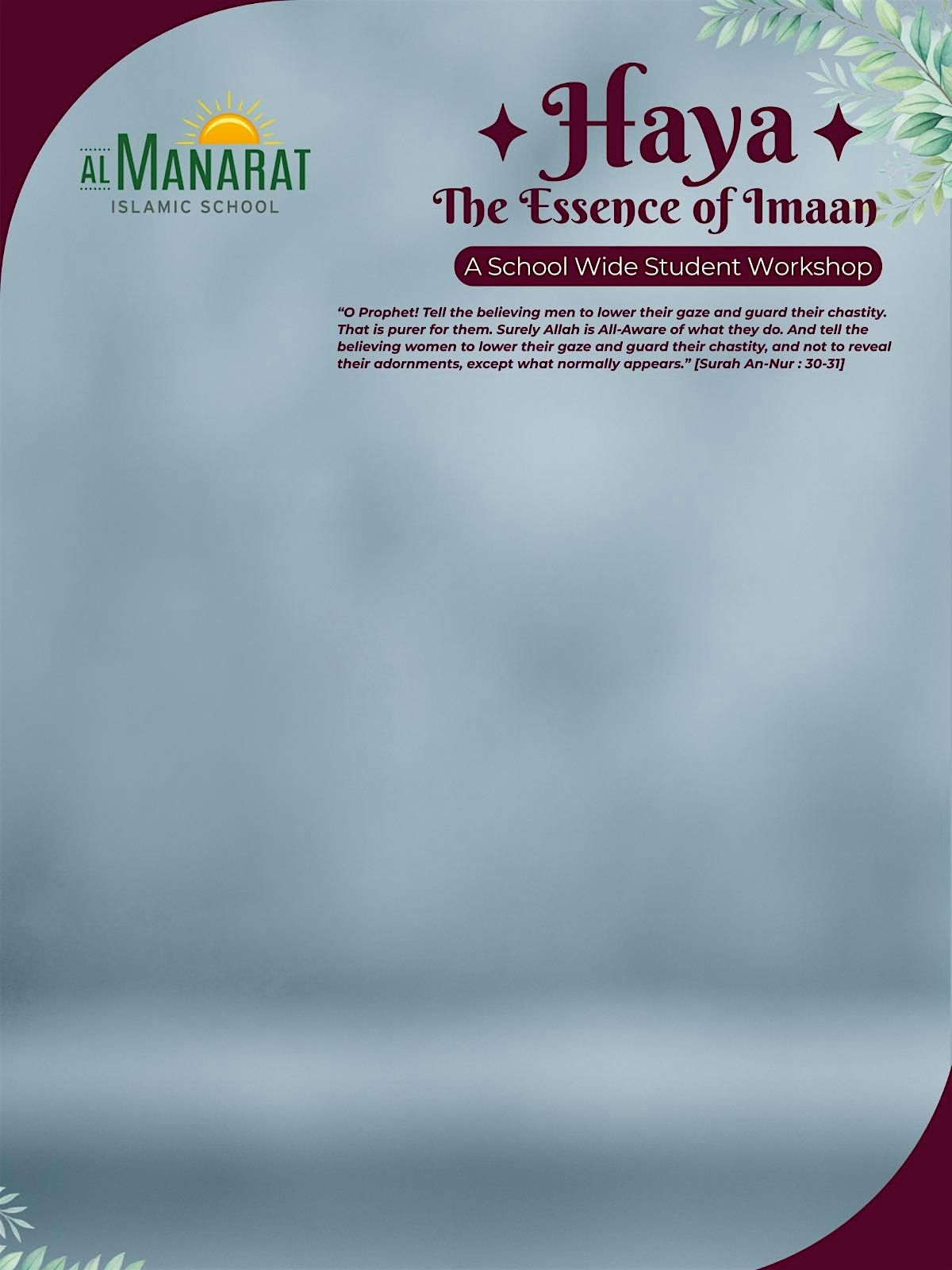 Inspiring & Reflective Wrokshop on Haya (Modesty). The core of a Believer's character that shapes the society