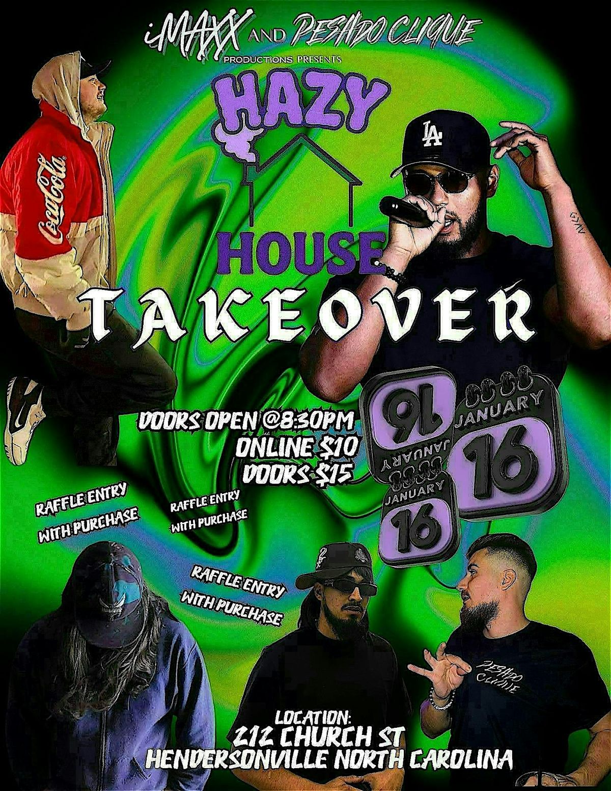 Welcome to the Hazy House Takeover event at Hazy House Dispensary! Get ready for a night of good vibes and great music on January 16, 2026 at 8:30 PM (Eastern Time). Join us for a unique experience filled with live performances and chill atmosphere. Don't miss out on this opportunity to connect with fellow music lovers and unwind in style. See you there!