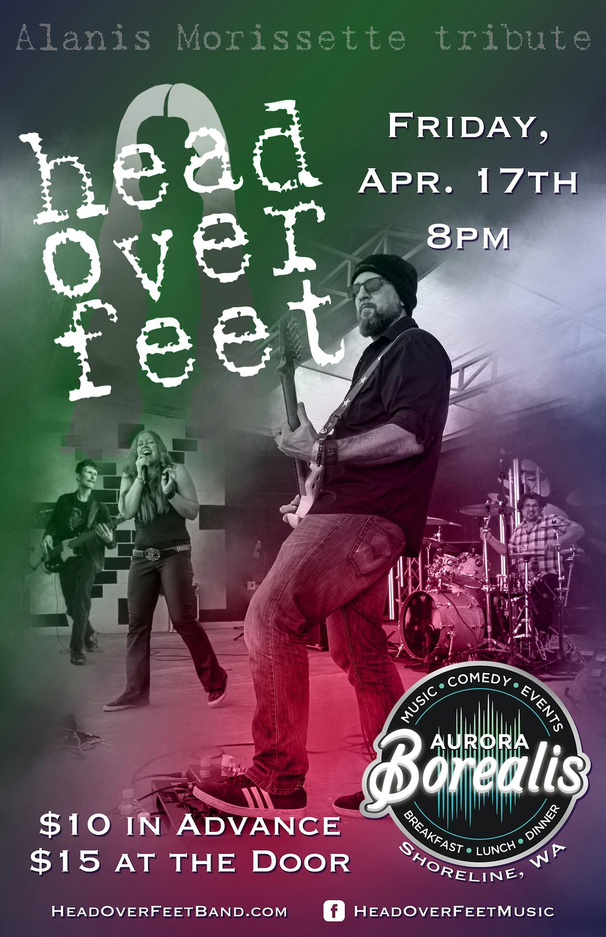 Head Over Feet, Washington's premier Alanis Morissette Tribute, channels the spirit of the 90s alt-rock scene with their electrifying performances. The band flawlessly captures the essence of Morissette's music, from anthemic hits like "You Oughta Know" to soul-stirring hard-rocking ballads such as "Uninvited." With a passion for authenticity and a knack for delivering unforgettable shows, Head Over Feet invites audiences to relive the magic of Alanis Morissette's iconic sound in every captivating performance.