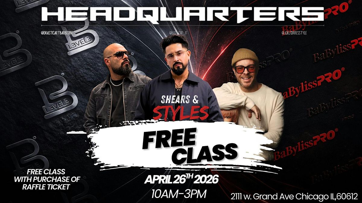 Headquarters Presents: FREE EDUCATION -SHEARS & STYLES-BabylissPRO & LEVEL3
