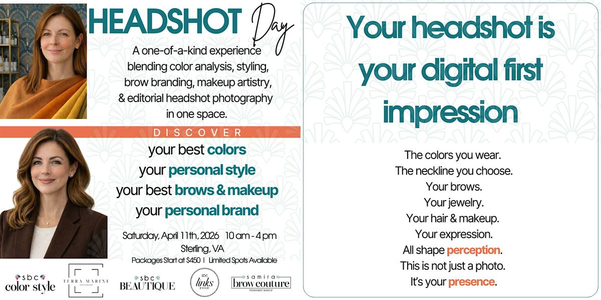 A one day, one-of-a-kind experience blending personal color analysis, personal styling, your ‘brow branding’, personal brand strategy, professional makeup artistry, professiobal hair styling and headshot photography. For this exclusive event, sbc Beautique, sbc Color Style, sbc Links, and Samira Brow Couture are teaming up with Terra Marine Photography to bring you one seamless experience all under one roof.