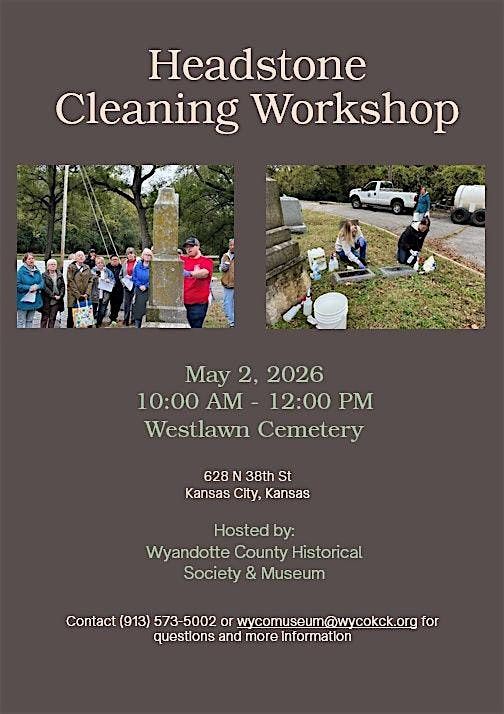 Join the Wyandotte County Historical Museum at the Westlawn Cemetery to learn how to clean gravestones.About this Event