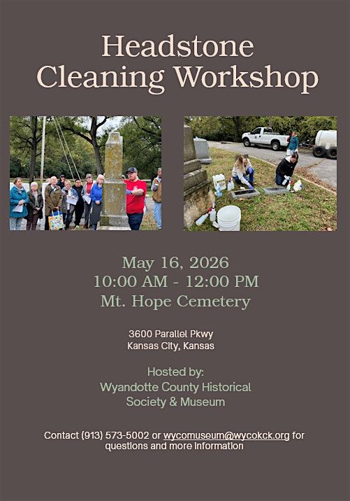 Join the Wyandotte County Historical Museum at the Mt. Hope Cemetery to learn how to clean headstones.About this Event