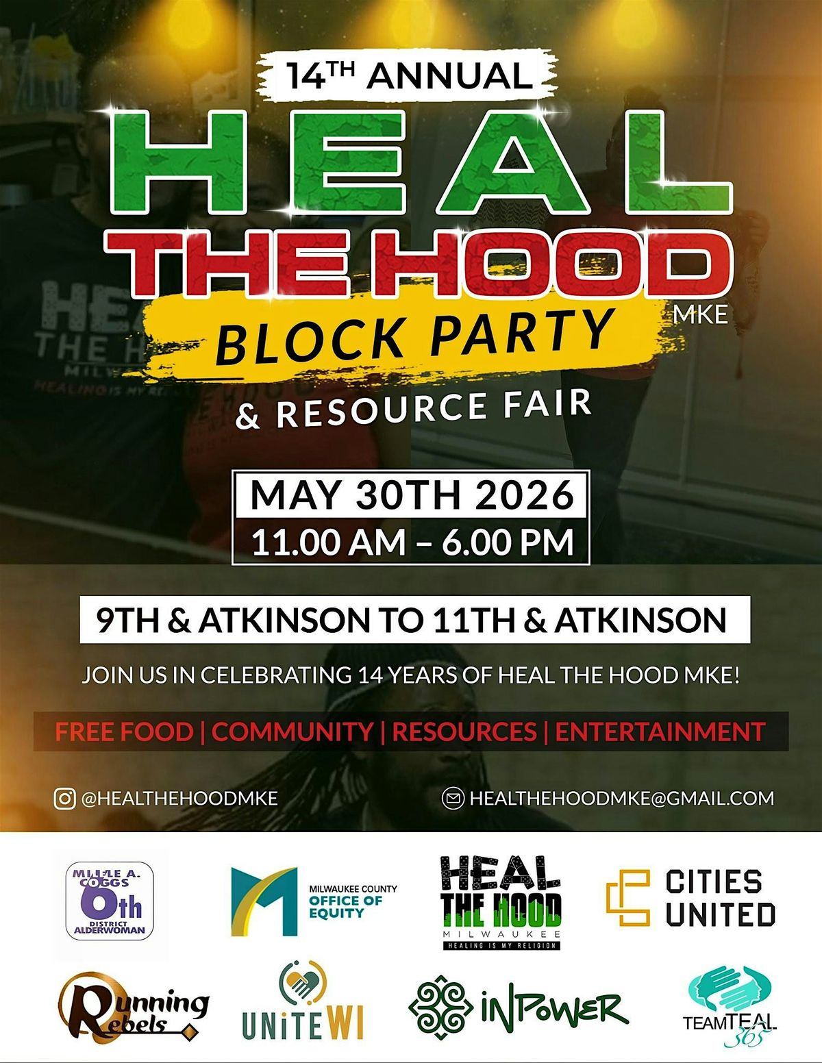 Join us on May 30, 2026 at 11:00 AM (Central Time) for a fun and laid-back day! This block party is all about community, good vibes, and connecting with local resources. Bring your friends and family to hang out, enjoy great music, food, and discover helpful services right in your neighborhood. Don’t miss out on this awesome chance to heal the hood together!