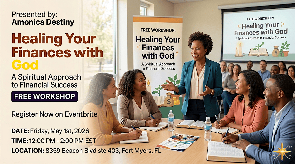 Join Amonica Destiny for an in-person event that dives deep into a spiritual approach to financial success. Let’s explore how faith and practical steps can transform your money mindset and bring healing to your finances. Whether you're struggling or just curious, this event is all about aligning your financial goals with your soul's purpose.