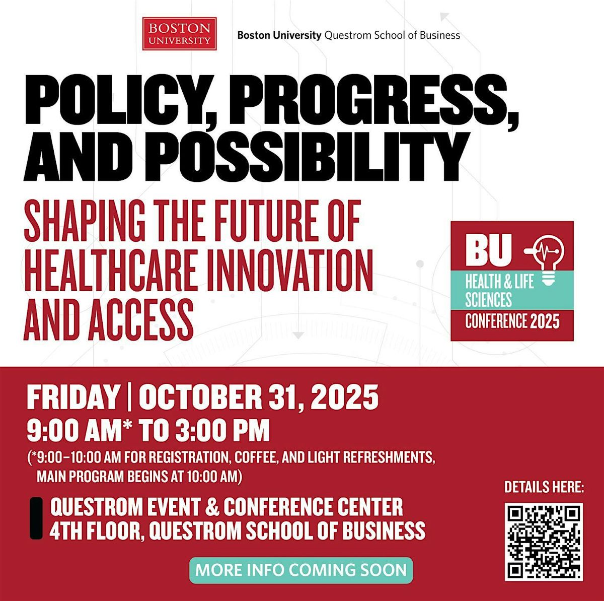 Questrom’s 13th Annual Health & Life Sciences Conference brings together leaders across healthcare, life sciences, and business to explore innovation, policy, and the future of health. Join fellow students, alumni, and industry professionals for a day of keynotes, panels, and networking focused on driving impact in today’s rapidly evolving healthcare landscape.