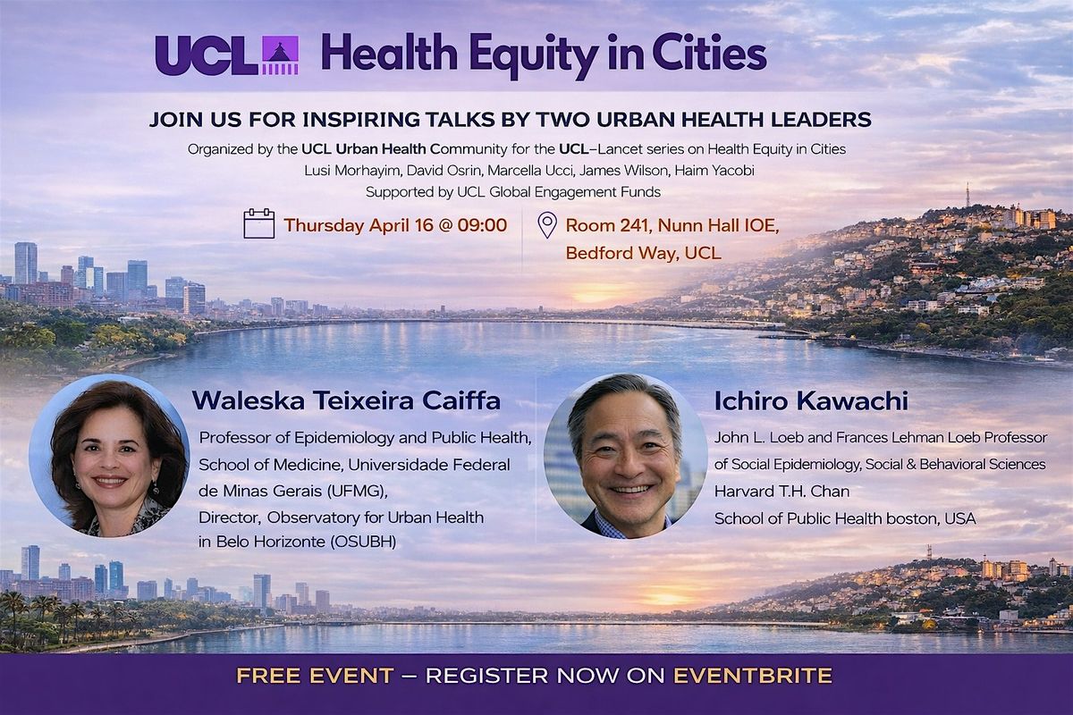 As the place-based nature of urban health inequalities gains increasing recognition, a key challenge is developing ways to understand and respond to the complex, layered processes through which urban environments shape and play a role in health equity across different contexts. Bringing together perspectives from epidemiology, urban health research, policy, and community practice, the speakers will explore how structural conditions, social connections, and the built environment influence everyday experiences of health and inequity in cities in both the Global South and Global North. The event will offer critical insights into built environment and health equity-centred approaches that link empirical evidence, community engagement, and policy action to advance health justice in urban settings.