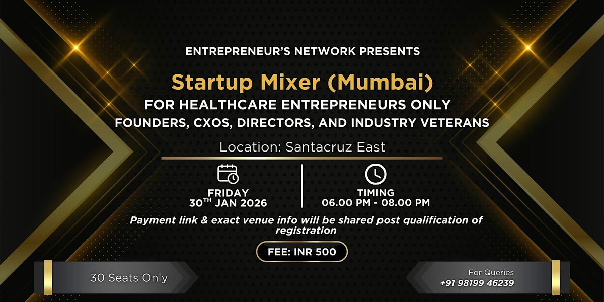 The Healthcare Startup Mixer, organised by Entrepreneurs Network, is a curated networking meetup designed exclusively for founders, leaders, and investors shaping the health, wellness, and health-tech ecosystem.