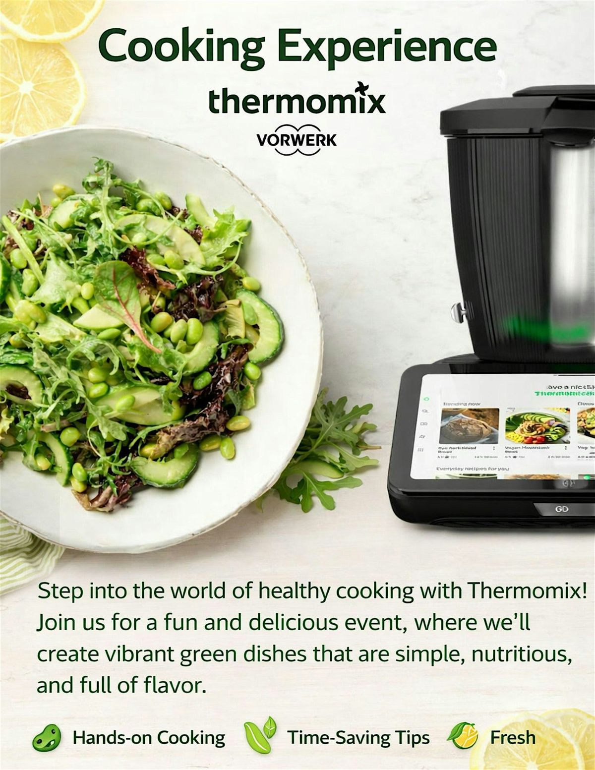 Join us for a fun, hands-on Cooking Experience with Thermomix where we’ll create fresh, vibrant, and delicious green dishes that are simple, nourishing, and full of flavor.