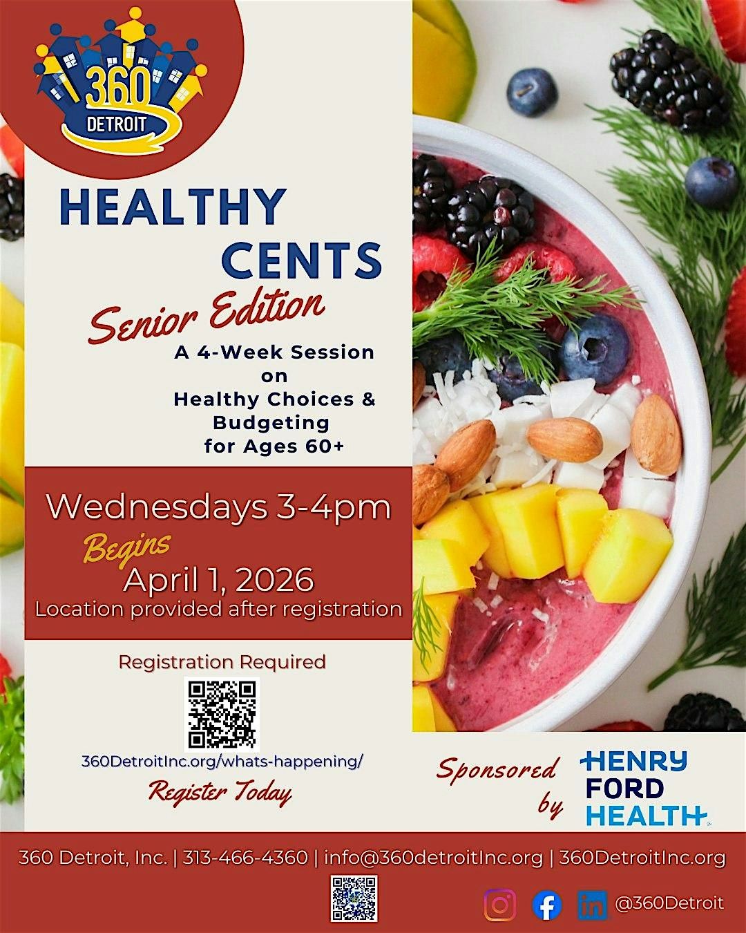 A fun 4-week session on healthy choices & budgeting. Join community seniors for free, fun and informative sessions. Free supplies & give aways. Full 4 week commitment required. Sponsored by Henry Ford Health.