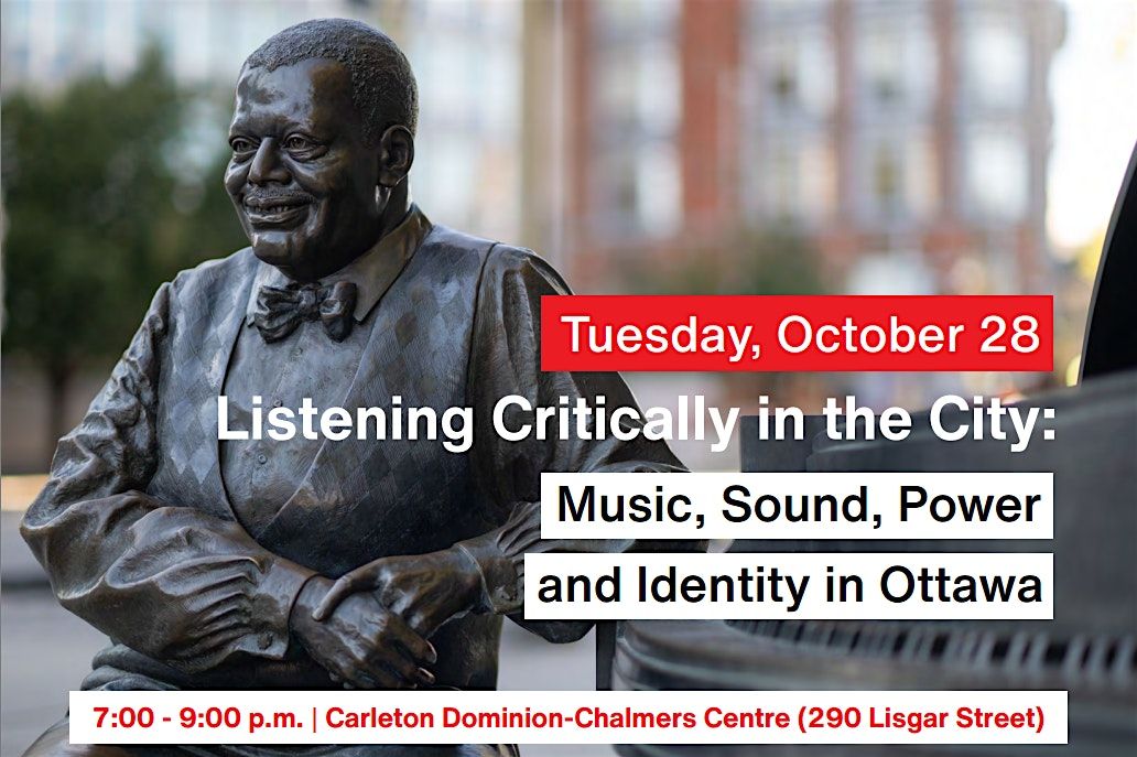 In our highly visual culture, we sometimes forget that the city reverberates with sound and music that provoke emotional responses and provide the rhythm to our daily lives. What kinds of soundmarks (sounds akin to landmarks) characterize Ottawa? How does music mark celebration, protest and cultural identity in our city? And how might listening help us to think about how we experience place, history, power and politics in the city through music and the soundscape?