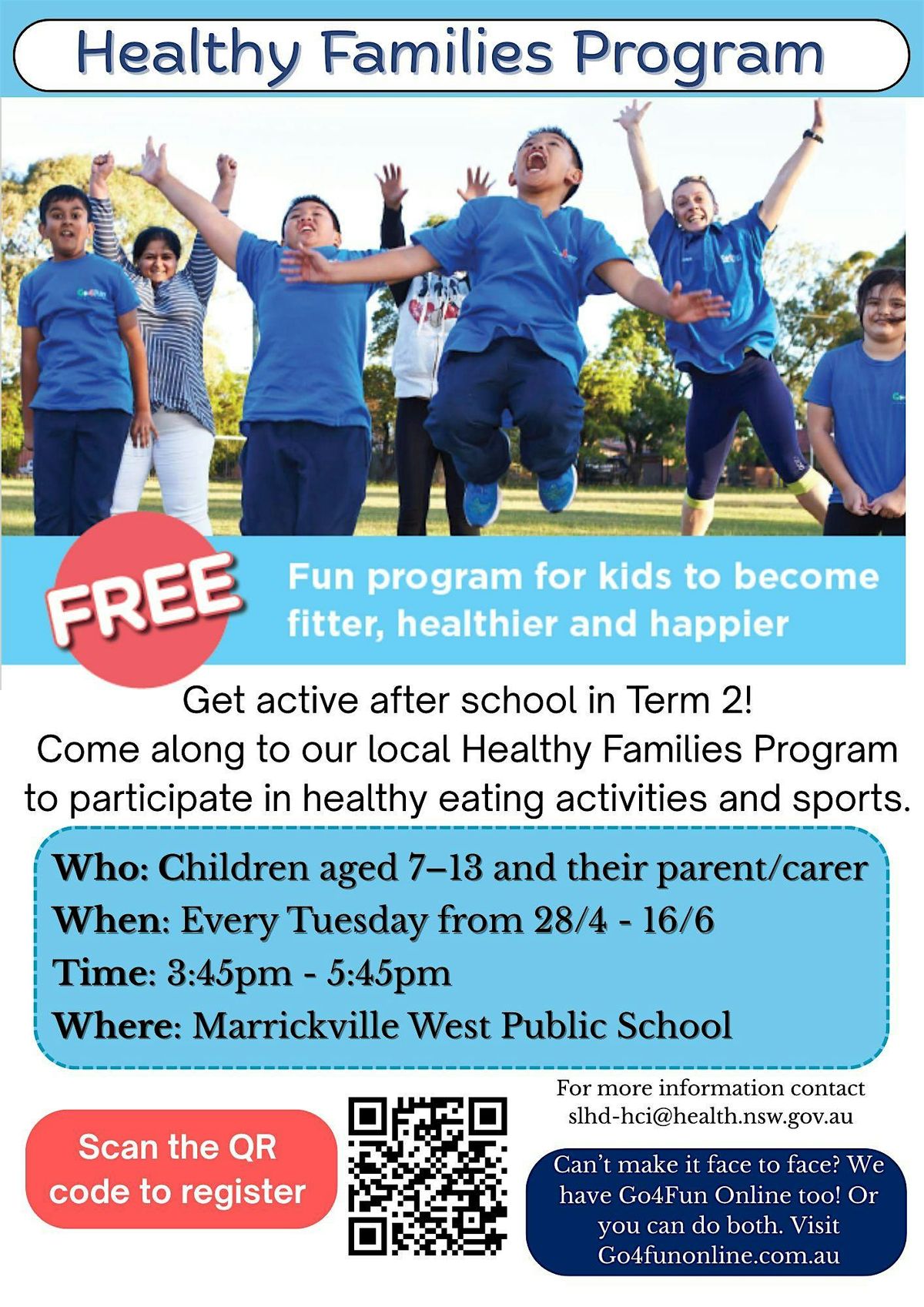 Sydney Local Health District is partnering with Connect Marrickville SaCC and Marrickvile West Public School to offer families a fun program to get active together.