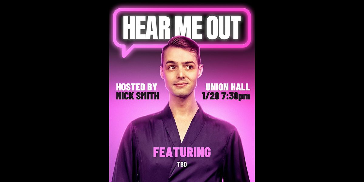 A monthly comedy show like no other! Hear Me Out Hosted by Nick Smith brings together Nick and a rotating cast of special guest comics for an evening of laughs and bold ideas. Each comic takes the stage to deliver their best stand-up, but here’s the twist – after their set, Nick gets personal, asking each comedian about their "Hear Me Out" moment. Whether it’s a dream, a strange goal, or an outrageous thought they've been holding onto, no topic is off-limits!