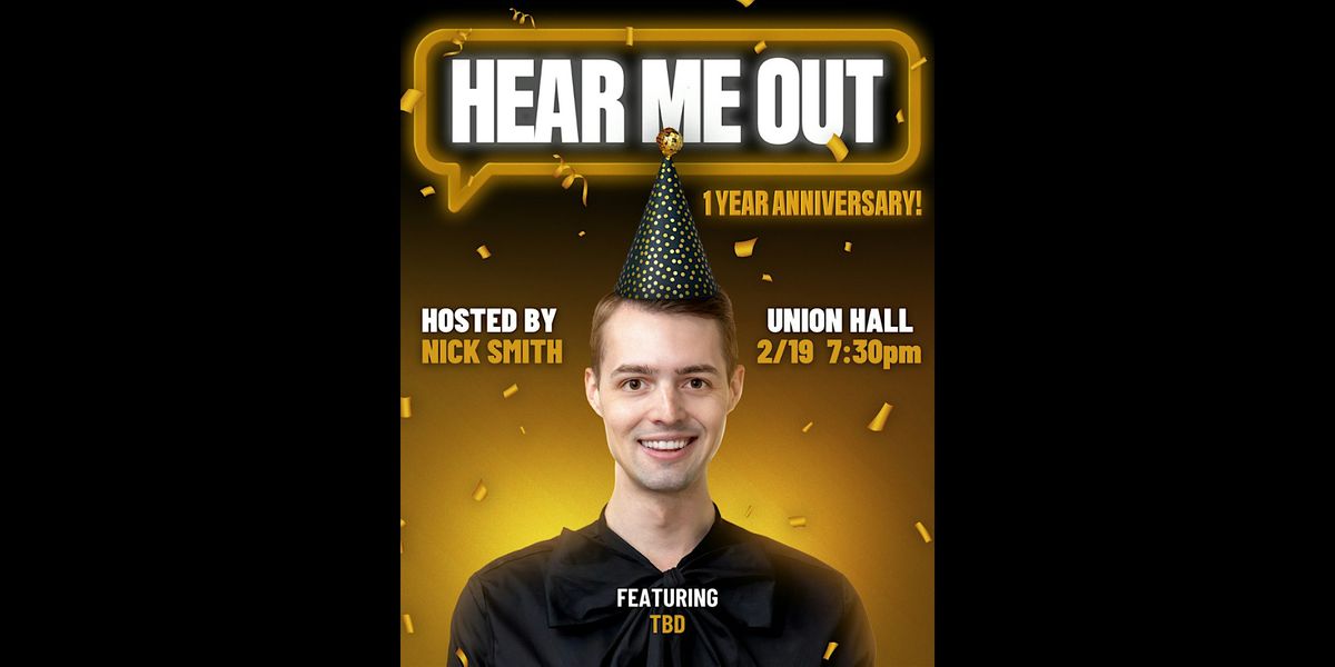 A monthly comedy show like no other! Hear Me Out Hosted by Nick Smith brings together Nick and a rotating cast of special guest comics for an evening of laughs and bold ideas. Each comic takes the stage to deliver their best stand-up, but here’s the twist – after their set, Nick gets personal, asking each comedian about their "Hear Me Out" moment. Whether it’s a dream, a strange goal, or an outrageous thought they've been holding onto, no topic is off-limits!