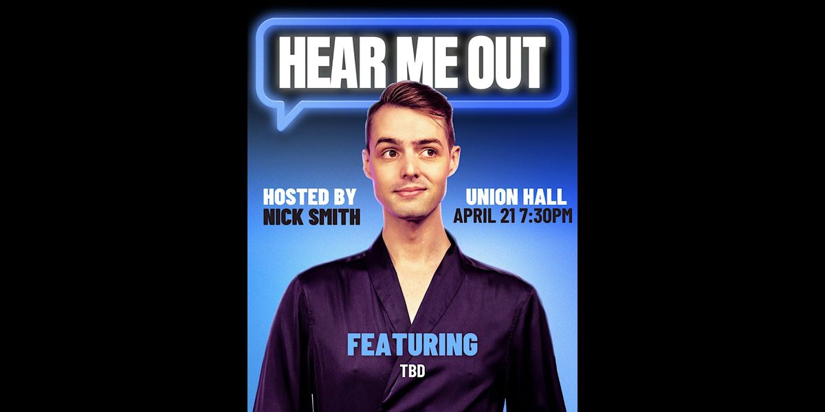 A monthly comedy show like no other! Hear Me Out Hosted by Nick Smith brings together Nick and a rotating cast of special guest comics for an evening of laughs and bold ideas. Each comic takes the stage to deliver their best stand-up, but here’s the twist – after their set, Nick gets personal, asking each comedian about their "Hear Me Out" moment. Whether it’s a dream, a strange goal, or an outrageous thought they've been holding onto, no topic is off-limits!