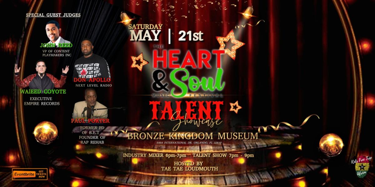 ORLANDO, FL – April 30, 2022 – The Heart & Soul Music Festival has teamed up with 98.5 the Wire on a first-of-its-kind music competition and industry mixer. The 2022 Heart & Soul Talent Showcase will be held Saturday, May 21, 2022 at the Bronze Kingdom Museum in Orlando, FL. The showcase and mixer is dedicated to discovering some of the brightest talents in the area and giving local artists the opportunity to connect with industry insiders, music executives, and other artists.