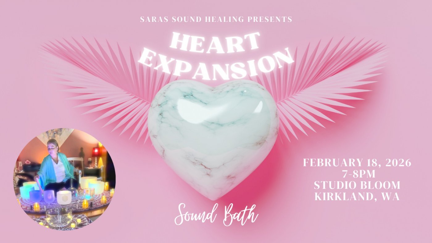 Join us for a deeply nourishing Heart Expansion Sound Bath on February 18, 2026, from 7–8pm at Studio Bloom in Kirkland, WA. This immersive experience is designed to gently activate and balance the heart chakra, inviting greater love, compassion, emotional release, and inner harmony. Through resonant sound and vibration, you’ll be guided into a meditative state where the heart can soften, open, and expand—leaving you grounded, refreshed, and reconnected to yourself and others.
