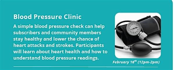 Stop by our Blood Pressure Clinic to get your levels checked and learn easy tips to keep your heart happy and healthy. It’s a great chance to ask questions and get friendly advice in person. Whether you’re keeping an eye on your numbers or just curious, everyone’s welcome. Let’s take care of our hearts together—see you there!