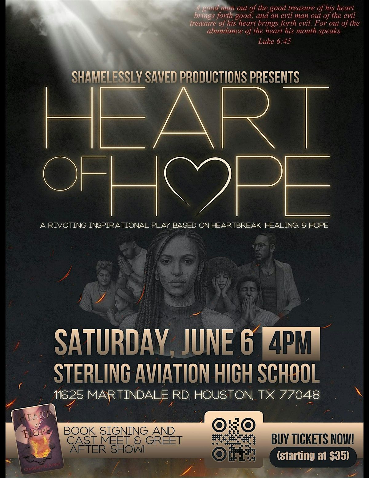 Get ready for an unforgettable evening with the Heart of Hope stage play. Experience powerful storytelling and amazing performances live, right in front of you. This is an in-person event, perfect for those who love theater and emotional journeys. Bring your friends, grab some popcorn, and dive into a world full of hope and inspiration. See you there!