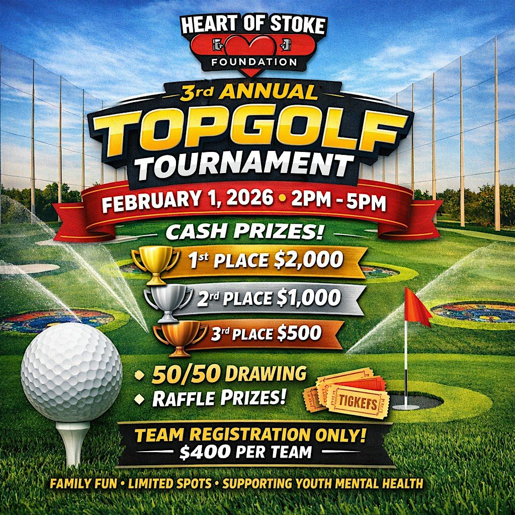 Grab your clubs, rally your crew, and warm up that victory dance—because the Heart of Stoke Foundation Annual Topgolf Fundraiser is back… and yes, it sold out the last two years in a row 👀.