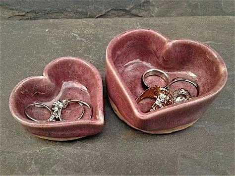Create heart shaped dishes, boxes, bowls and more. Beginners are welcome! We make our pottery classes easy for new clay artists.