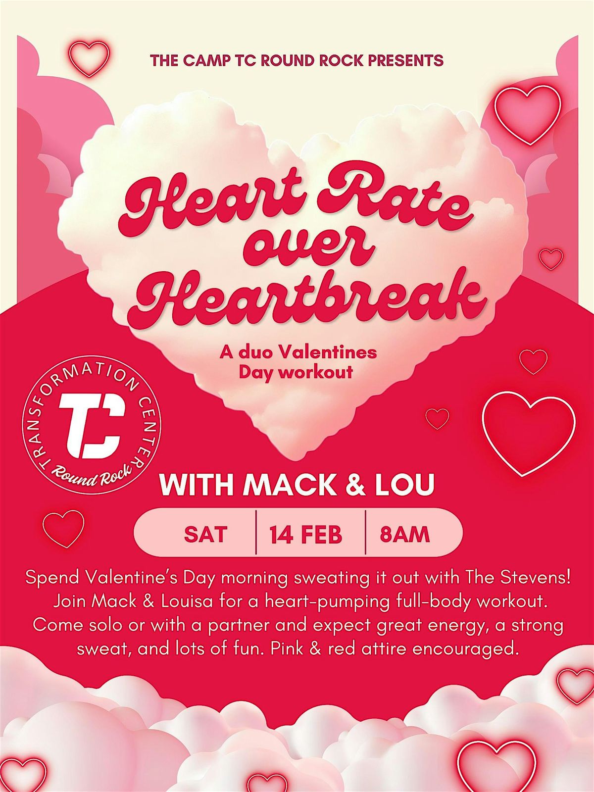 Spend Valentine’s Day morning sweating it out with Mack & Louisa for a heart pumping full body workout. Pink and Red attire encouraged.