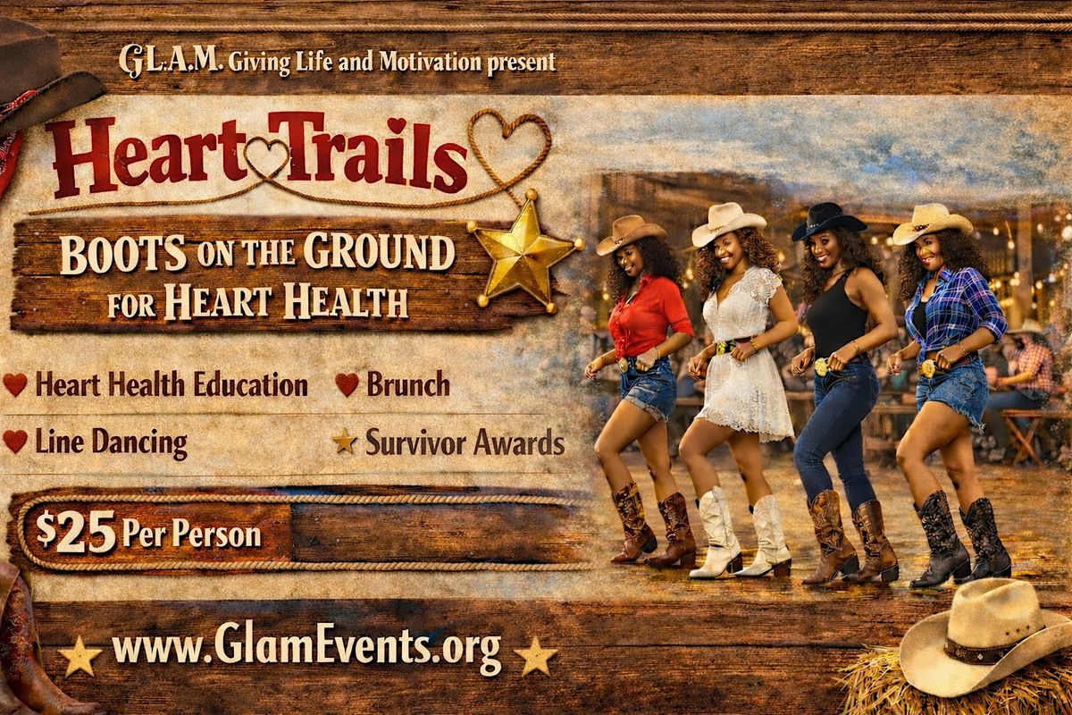 Heart Trails: Boots on the Ground for Heart Health—brunch, line dancing, heart health, & survivor celebration to support G.L.A.M.’s mission
