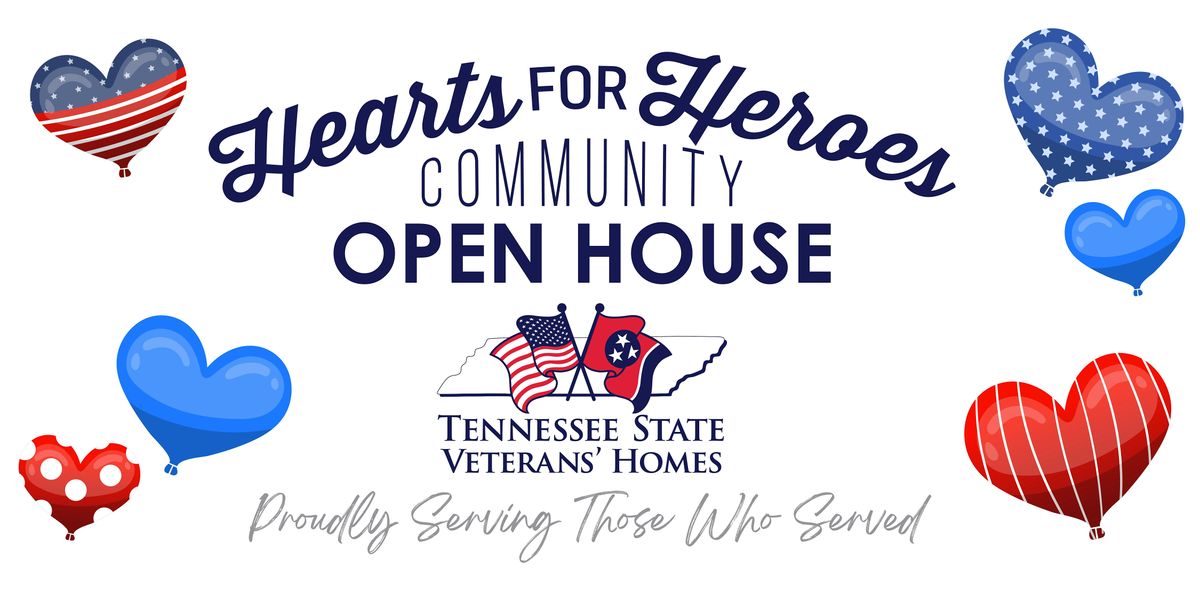 Join us in person at the Tennessee State Veterans' Home Murfreesboro (next to the VA) for the Hearts for Heroes Community Open House!