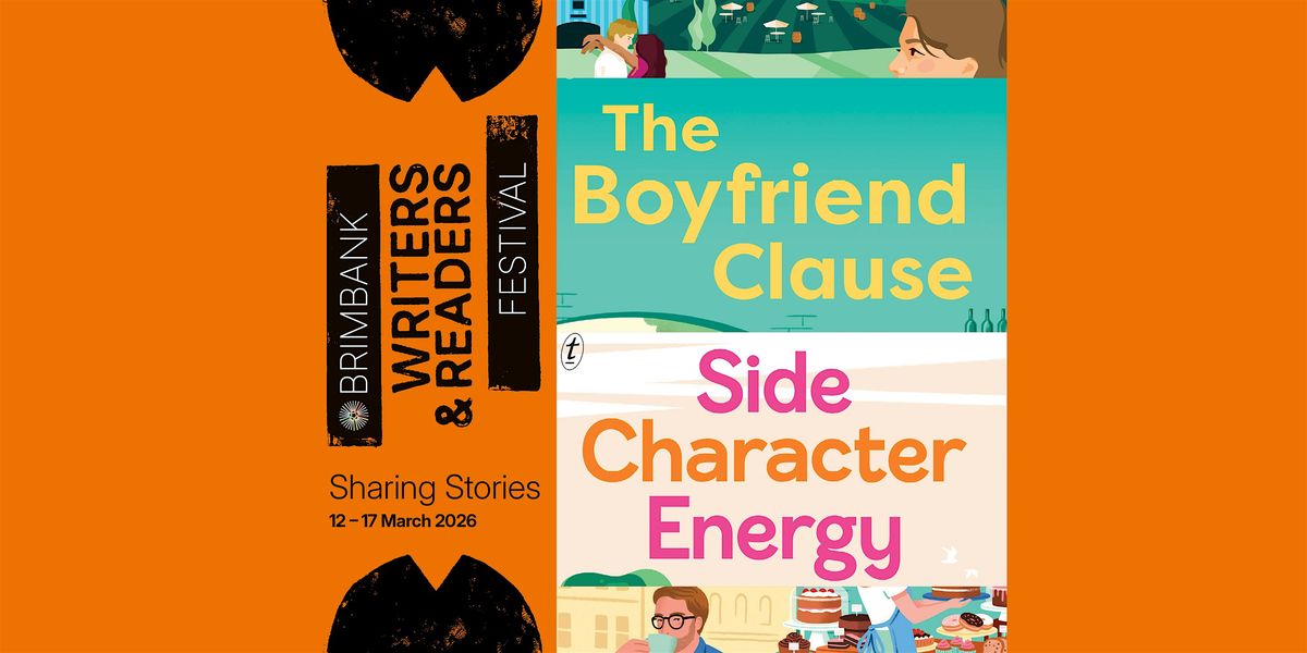 [ Image description 1: Collaged Image of Bookcovers Side Character Energy by Olivia Tolich and The Boyfriend Clause by Bridie Blake. Text reads Brimbank Writers & Readers Festival, Sharing Stories 12-17 March 2026]