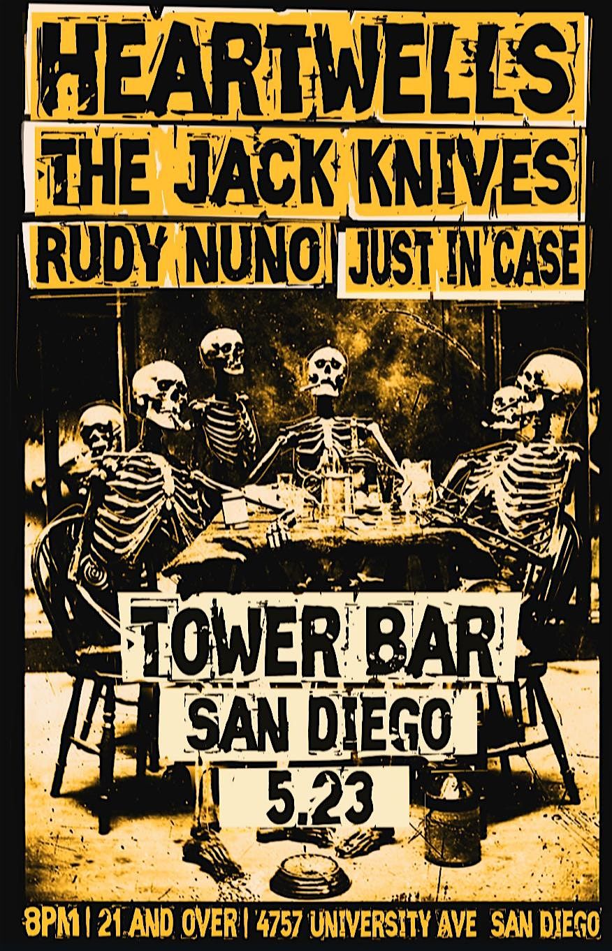 Come rock out with HEARTWELLS, The Jack Knives, Rudy Nuño, and Just In Case live at Tower Bar, San Diego!