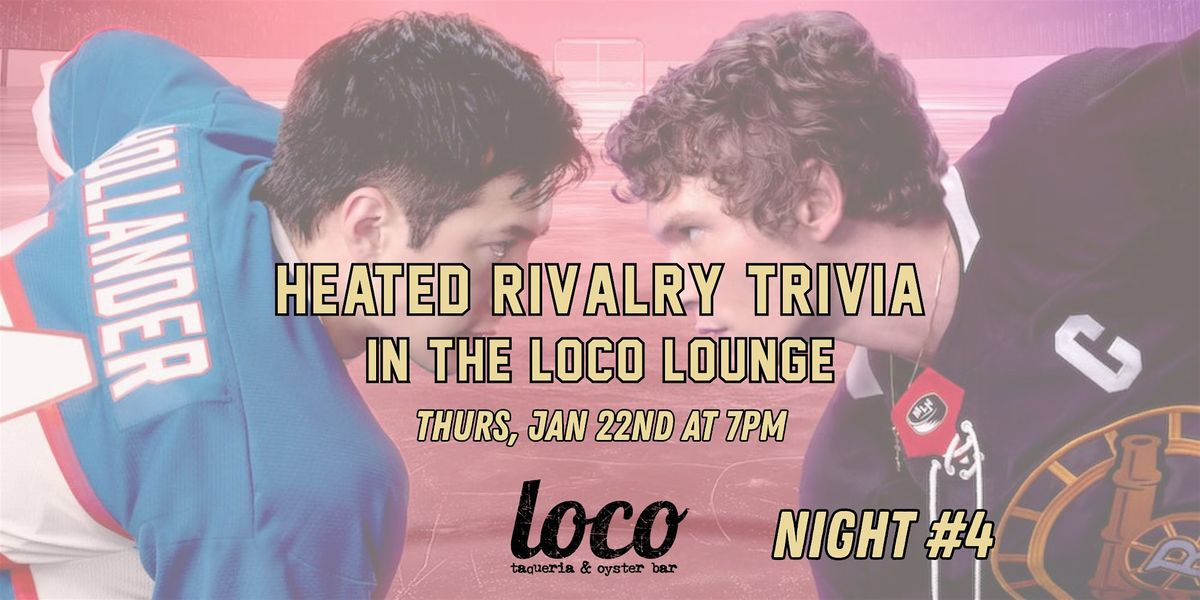 Join us in the Loco Lounge at 7pm for a spicy trivia showdown dedicated entirely to Heated Rivalry. Expect messy questions, loud opinions, strong drinks, and zero shame in the game. And we're turning it up a notch. Make a shot into the hockey net & receive bonus points for your team.