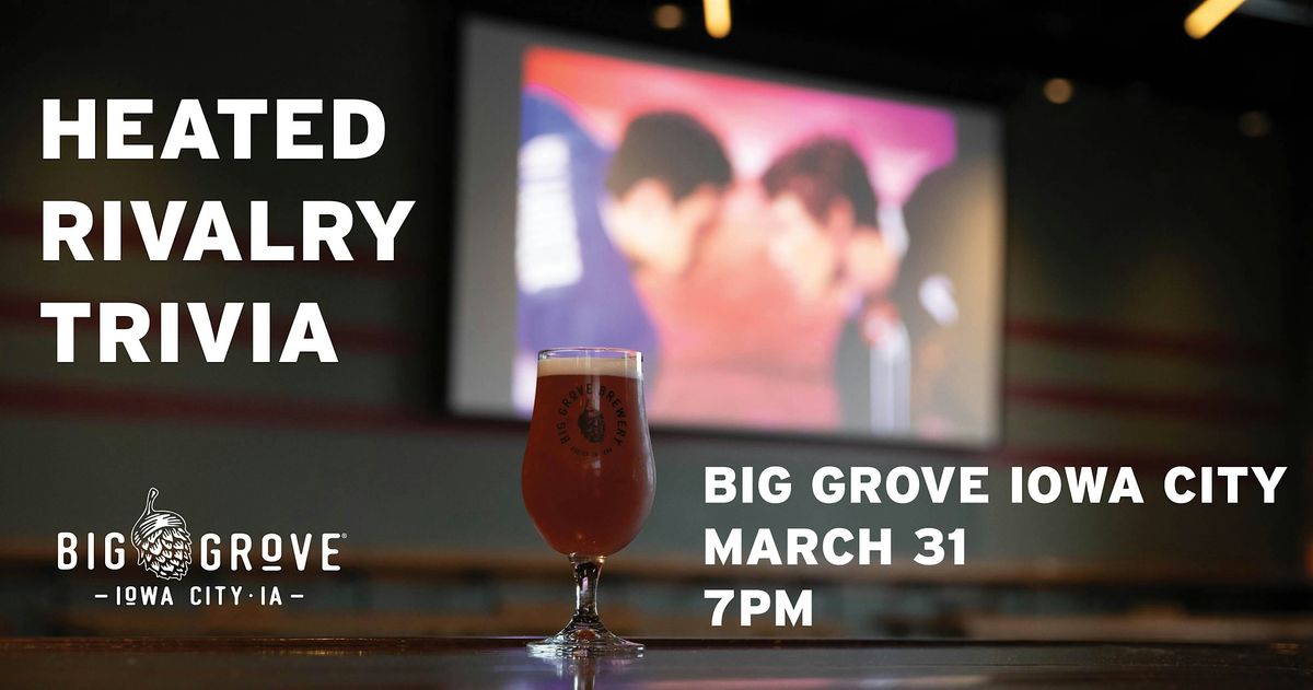Settle the score at Big Grove Iowa City! Join us on March 31st for a Heated Rivalry Trivia Night hosted by Bitchin' Events and the fabulous Hazel Sanchez-Belle.