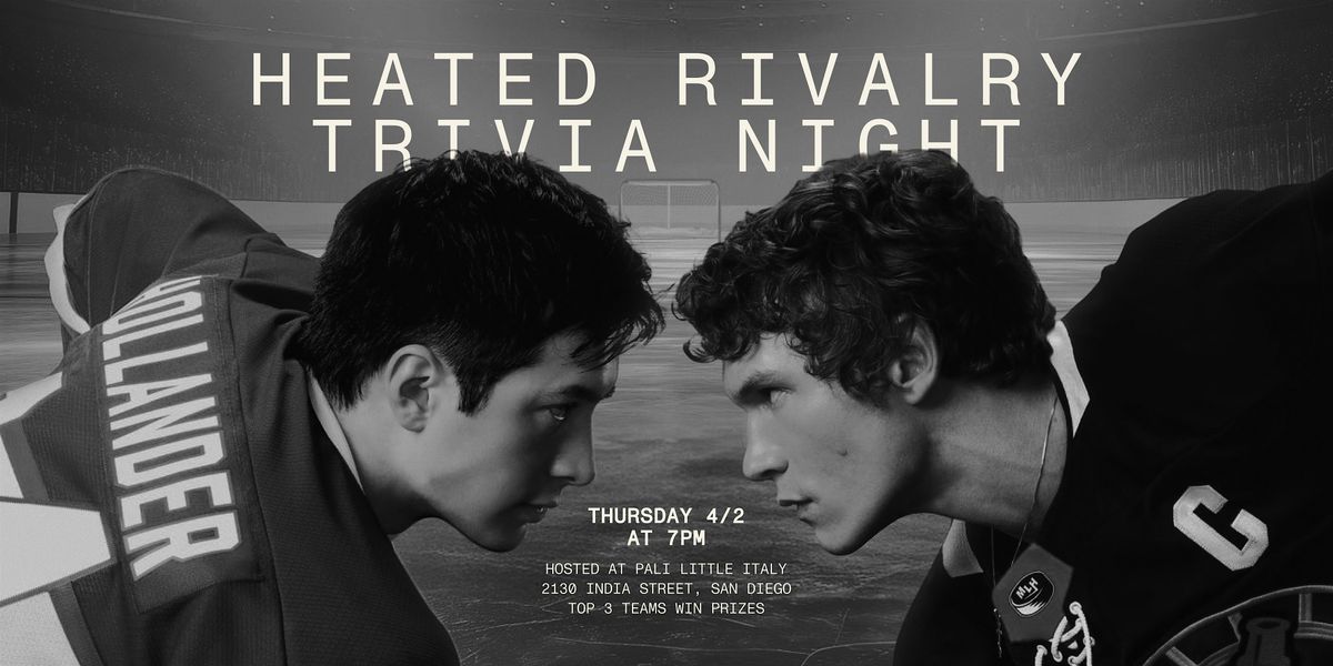 On Thursday, April 2nd at 7 PM, head to Pali Wine Co in Little Italy for a night of tension, chemistry, and unforgettable moments at Heated Rivalry Twisted Trivia—all about the hit TV adaptation of Rachel Reid’s beloved story.