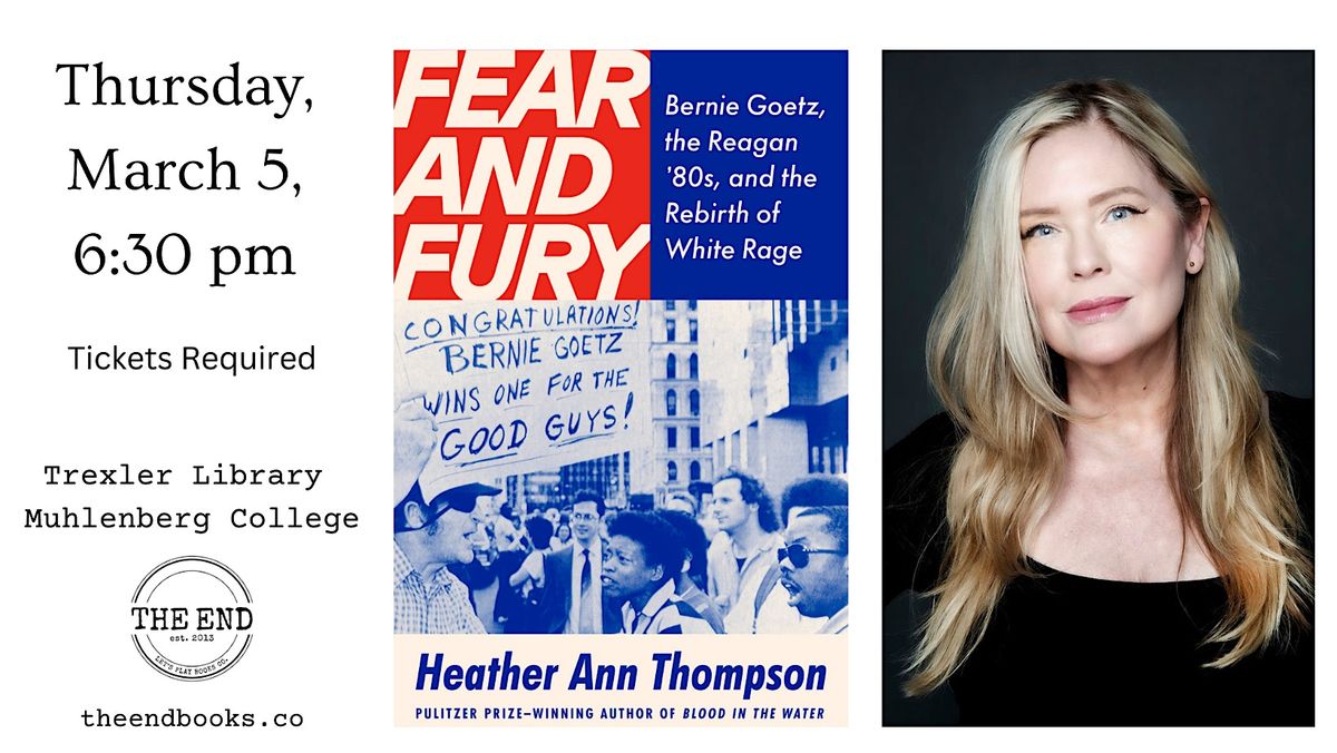 Join us on Thursday, March 5, as we welcome historian and Pulitzer Prize-winning author Heather Ann Thompson to discuss her book, Fear and Fury: The Reagan Eighties, the Bernie Goetz Shootings, and the Rebirth of White Rage (Penguin Random House, 2/2026).