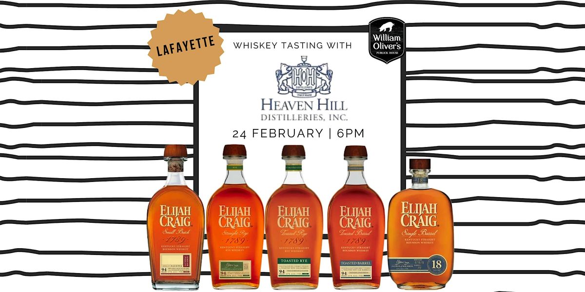 Dive into Elijah Craig with a guided Heaven Hill tasting in Lafayette. Five premium pours, iconic flavors, unforgettable whiskey night.About this Event